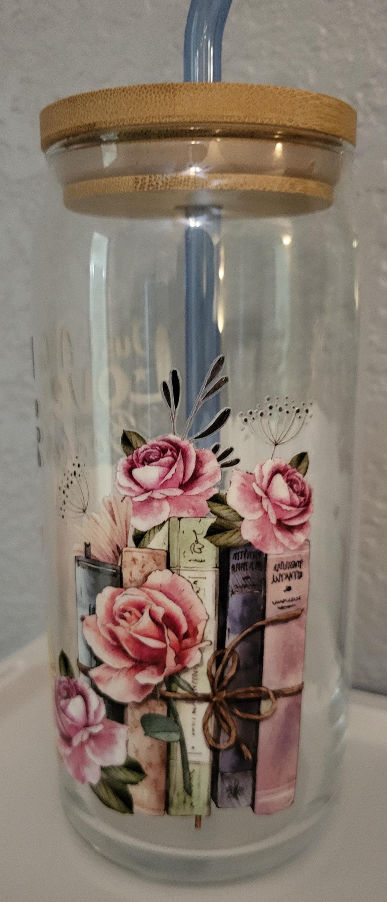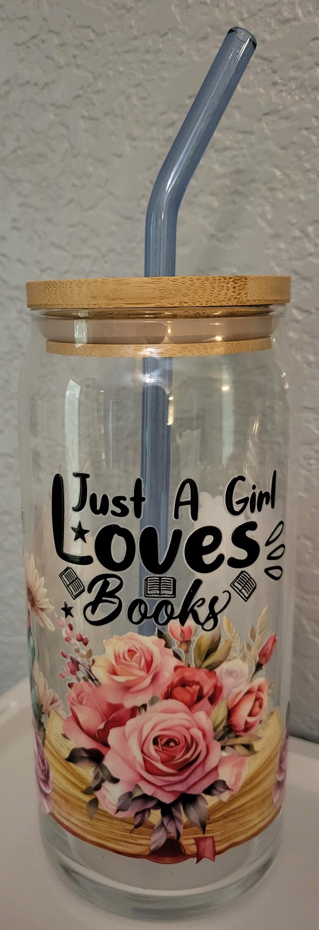 • 20 oz glass cup with lid and straw