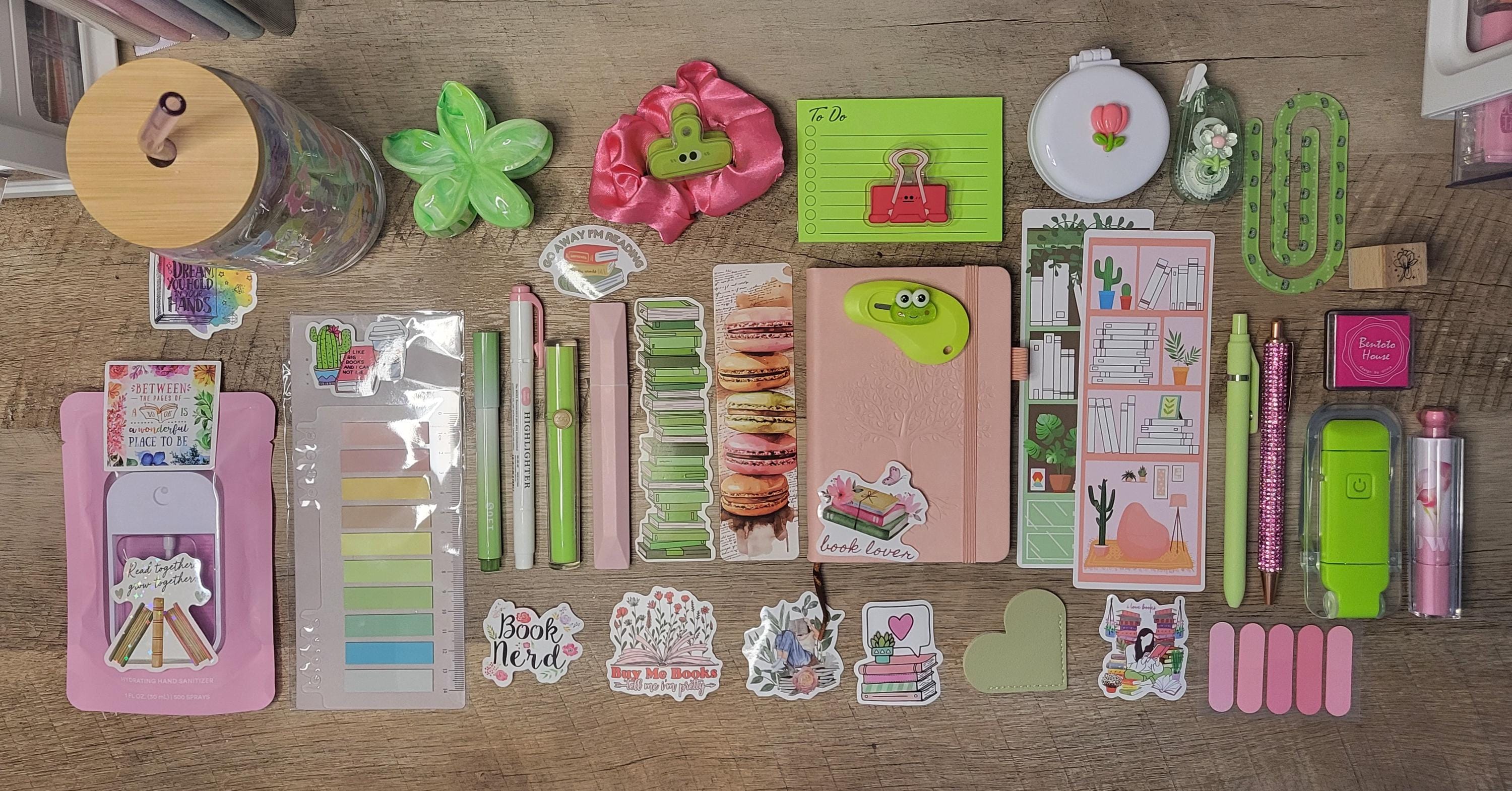 Pink & Lime Green Book Lover Stationery Bundle, A6 Journal